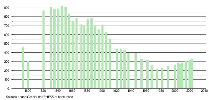 - ↑ Fiches Insee - Populations de référence de la commune pour les années 2006, 2007, 2008, 2009, 2010, 2011, 2012, 2013, 2014, 2015, 2016, 2017, 2018, 2019, 2020, 2021 et 2022.