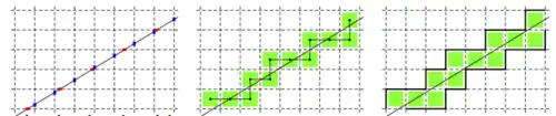 Un mot sturmien peut être représenté par une discrétisation d'une droite. Dans ce cas, on s'intéresse aux points d'intersection de la droite avec la grille entière. On obtient une suite de coupures (« cutting sequence » en anglais) qui code les intersections verticales et horizontales. La relation avec les mots mécaniques est un cisaillement. On peut aussi considérer les carrés traversés par la droite. Les contours supérieurs et inférieurs de ces carrés forment les mots mécaniques supérieurs et inférieurs respectivement.