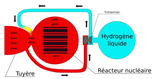 Le moteur-fusée est le type de moteur au principe de fonctionnement le plus simple : deux ergols brûlent dans une chambre de combustion, sont accélérés puis éjectés par une tuyère de Laval.