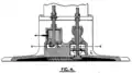 - ↑ Clerk précise la section du piston : 50,26 in². Celui-ci étant de section circulaire, l'alésage (en pouces) est donné par