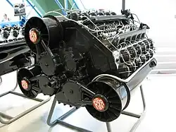 Un premier exemple est l'Isotta Fraschini Asso 750 motorisant l'hydravion italien Savoia-Marchetti S.55, piloté par Italo Balbo jusqu'à Chicago en 1933. Ce moteur est dans la même configuration que la récente série de moteurs prototypes 18 cylindres fabriqués par Bugatti – basiquement un banc vertical de six cylindres avec deux bancs adjacents fixés à 60° chacun donnant un W-18. Dans le moteur Hispano-Suiza 18R l'angle est de 80°.