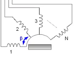 - peu coûteux, d'une bonne précision. Dans l'exemple, avec seulement 4 enroulements, on obtient 24 pas (on peut facilement obtenir 360 pas). Le sens du courant dans la bobine n'a aucune importance.