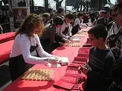 Exemple de petit jeu pédagogique (artisanal) pour les enfants où la motivation se marie avec le renforcement (drill) des connaissances. Une question (épeler un mot, réciter ses tables de multiplications, traduire un mot dans une autre langue, etc.) est posée à un élève qui appuie sur le bouton vert ou rouge en fonction de la réponse, bonne ou incorrecte. Chaque impulsion allume une diode. À la fin de la série, un smiley spécifique s'affiche en fonction du score. Ce jeu constitue un très bon renforcement positif et donne l'envie de se dépasser sans se sentir jugé.