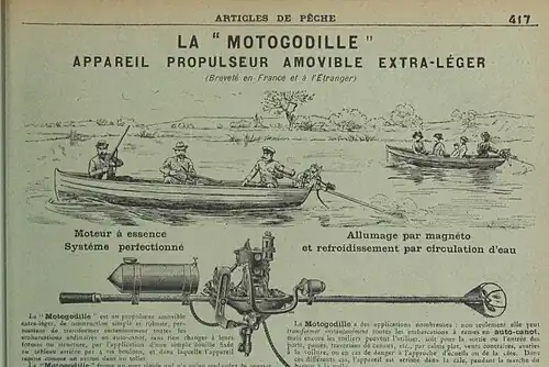 Une Motogodille (marque déposée à l'époque et oubliée depuis) est un des premiers moteurs hors-bord pratique d'utilisation, réalisé en France par un industriel parisien, le baron Gabriel Trouche. Cette motorisation disposée sur les barques fluviales permet un très faible tirant d'eau sur les bancs de sable émergents et un échouage aisé.