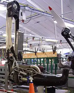 Le moteur est soit un moteur à piston 2-temps soit un moteur Wankel qui nécessite un refroidissement liquide avec un radiateur qui est fixé sur le pylone.