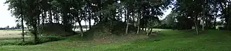 Les trois mottes castrales dont deux très bien conservées s’étendent sur une superficie d’environ 4 ha et se composent de trois tertres : au sud, une motte principale dominant l’ensemble ; au nord, deux petites buttes mitoyennes, distantes de 4,50 m et séparées par un cours d’eau, la Goze ; au centre, une vaste plateforme surélevée.