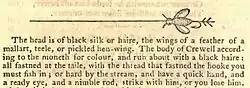 La confection des mouches ne nécessite parfois que de la dextérité : un certain nombre de monteurs réalisent leurs mouches en suivant les instructions fournies dans des "fiches de montage". À l'instar de recettes de cuisine, ces fiches présentent d'une part la liste des matériaux nécessaires (filoplumes ou poils divers) puis les étapes à suivre pour confectionner la mouche. De très nombreuses fiches de montage sont publiées sous forme de livres (illustrés de photos le plus souvent) ou de vidéos, ou se trouvent sur internet (sous les mêmes formes).