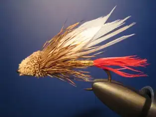 - la première (la plus proche du pêcheur) est la sauteuse. C'est une mouche très fournie ressemblant beaucoup à un palmer. Son nom vient de la manière dont le pêcheur en noyée fait travailler son bas de ligne en action de pêche, en toujours faisant entrer et sortir cette mouche de l'eau (les remous et le bruit provoqués ayant un effet "teaser").
