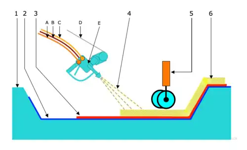 - répétition de la projection et de l'imprégnation jusqu'à obtention de l'épaisseur souhaitée ;