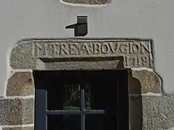 Autre vue de la façade du Moulin de Kerguerhent. Il s'agit de la façade qui contient les nombreuses inscriptions.