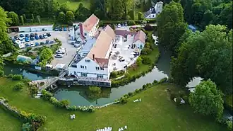Photo prise en hauteur du moulin et de son parc.