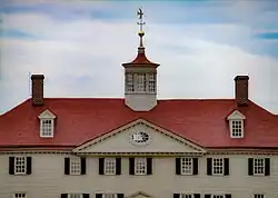 Le corps de logis est doté d'un toit en croupe avec des lucarnes ; les ailes secondaires sont dotées de toits en bâtière avec lucarnes. Outre son deuxième étage, l'importance du corps de logis est encore soulignée par deux grandes cheminées perçant le toit et par une coupole surmontant le centre de la maison ; ce point focal octogonal possède une courte flèche surmontée d'une colombe de la paix dorée[11]. Cette disposition de la coupole s'inscrit davantage dans le style restauration anglaise que palladien et a probablement été incorporée pour améliorer la ventilation du grenier agrandi et renforcer la symétrie globale de la structure et des deux ailes ; une coupole similaire couronne le palais du Gouverneur de Williamsburg, connu de Washington.