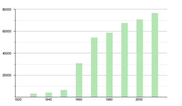 | 1960 | 30 889 | ▲ +370,65 % | |