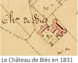 Le château de Biès: Le château de Biès dont le nom figure déjà sur un acte de 1676 et sur le cadastre de 1831, reconnaissable avec ses deux tours aux angles du bâtiment principal, est encore debout aujourd’hui. Cette ancienne exploitation agricole et d’élevage fortifiée, était au XVIIesiècle la propriété de la famille d’Albouy de Biès co-seigneurs des Cassès, la commune voisine. En 1831 le château est habité par Paul Cramaussel (métayer) marié à Anna Itier (ménagère), leurs enfants Marie (7 ans), Laurine (3 ans) et les domestiques de ferme Charles Méric (20 ans) et Malénie Berthoumieu (15 ans). En 1896, le château de Biès est toujours occupé par la famille Cramaussel. En 1901, par Pierre Couloumiès (cultivateur) et ses enfants: Jean (cultivateur), Marguerite, Marie, Etienne. En 1911, son propriétaire est Jean Raynaud (né à Mourvilles-Hautes / Maire de Mourvilles-Hautes en 1881) cultivateur marié à Antoinette Germa (née à Montmaur) ménagère. Leurs fils, Eugène Raynaud. La belle-mère Jeanne Germa (née à Avignonet) et le neveu Georges Germa (né à Castelnaudary) cultivateur. En 1926, le château est habité par Antoine Itier (cultivateur) marié à Anna Antoine. Leur fils: Jean Itier (cultivateur). Le beau-père Bernard Antoine (cultivateur). En 1931, par Jean Espinasse (né à Montmaur) cultivateur marié à Maria Rouquet (née à Montmaur). Leurs enfants: Aurélie Espinasse (née à Montmaur) mariée à Paul Frêde (né aux Cassès) cultivateur, Anna Joséphine Espinasse (née à Montmaur). En 1936, par Henri Espinasse (cultivateur) marié à Louise. Leurs enfants: Marie-Rose, Joséphine, Yvonne.