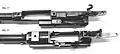 L'extrémité postérieure du canon à surface hélicoïdale est la paroi antérieure de la chambre des contreforts. C'est sur cette paroi que le tenon de fermeture inférieur (de droite) va s'appuyer lors de l'ouverture de la culasse pour permettre d'extraire sans effort la douille qui colle dans la chambre.
