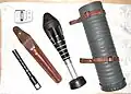 - Grenade en caoutchouc avec empennage en métal léger.
