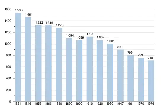 L'essor démographique a été particulièrement important entre 1760 et 1841: la population double entre ces deux dates pour atteindre 1 633 habitants en 1841.