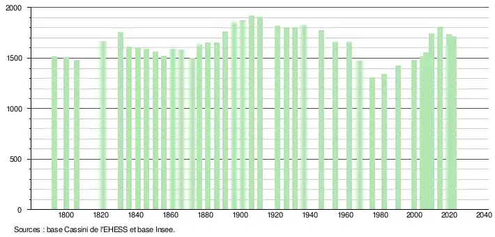 - ↑ Fiches Insee - Populations de référence de la commune pour les années 2006, 2007, 2008, 2009, 2010, 2011, 2012, 2013, 2014, 2015, 2016, 2017, 2018, 2019, 2020, 2021 et 2022.