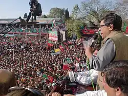 Le , le PTI arrive largement en tête des législatives mais sans obtenir de majorité absolue. Il entame alors des négociations pour former un gouvernement de coalition avec des petits partis et des indépendants[19]. Le , le PTI annonce avoir trouvé un accord en vue de former un gouvernement de coalition, ralliant la Ligue musulmane du Pakistan (Q), le Parti baloutche Awami et la Grande alliance démocratique. Le Mouvement Muttahida Qaumi rejoint peu après la majorité[20],[19]. De plus, le PTI renforce largement sa position à l'Assemblée provinciale de Khyber Pakhtunkhwa et prend la tête à l'Assemblée provinciale du Pendjab grâce à des ralliements indépendants.