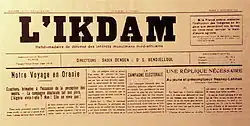 L’émir Khaled, petit-fils de l’émir Abdelkader, est la figure emblématique de ce mouvement ; il avait notamment adressé en 1919 un message au président Wilson réclamant l'application du droit des peuples à disposer d’eux-mêmes à l'Algérie[15] et la représentation des Algériens à la conférence de Versailles[16]. Il triomphe aux élections municipales d’Alger[17], puis aux départementales en 1920. Il mène de 1920 à 1923 une lutte contre le système colonial français, notamment par le biais du journal L’Ikdam qui présente le combat pour la cause algérienne et la défense des intérêts des musulmans[18]. Présenté comme un nationaliste anti-français, il est critiqué par la presse européenne de l'époque[19] et dénoncé par les élus administratifs[20].