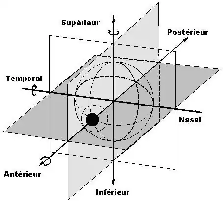 En tournant l'œil à partir de la direction fondamentale, on définit une position primaire. C'est celle d'où part le regard dans le mouvement considéré, et une position secondaire ou finale. Les axes déduits des axes antéro-postérieurs, nasotemporal et verticaux lors de la rotation qui amène le regard de la position primaire fondamentale à la position primaire du mouvement envisagé sont appelés axes de Fick, et servent à repérer les rotations.