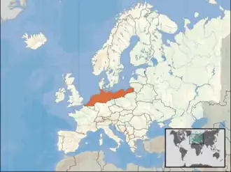 - ↑ Ce territoire comprend le Benelux actuel, la Flandre française, l’Allemagne au-dessus de la ligne de Benrath et les territoires en Pologne et la Prusse-Orientale où on parlait encore le bas allemand en 1910. Voir aussi la carte de l’aire linguistique allemande (haut et bas allemand confondus).