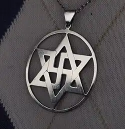 Symbole du mouvement, combinaison de l'étoile de David et de la svastika. | ||