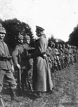 Le , un défilé réunissant des délégations des troupes du VIIe Corps d'Armée allemand a eu lieu en présence du commandant en chef de la Ve Armée, le Prince héritier Guillaume de Prusse, entre le «Parc de Charmois» et la place du village. Le Prince héritier a procédé à des remises de distinctions et a rendu hommage aux réalisations de ces troupes aux batailles de la Somme et de Verdun[21].