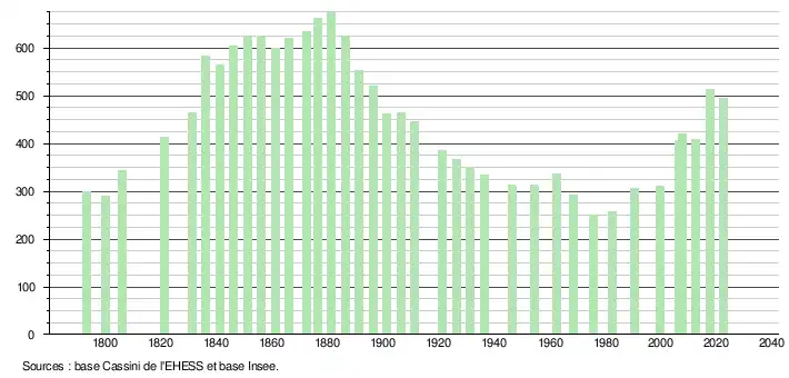 - ↑ Population municipale de référence en vigueur au 1er janvier 2025, millésimée 2022, définie dans les limites territoriales en vigueur au 1er janvier 2024, date de référence statistique : 1er janvier 2022.