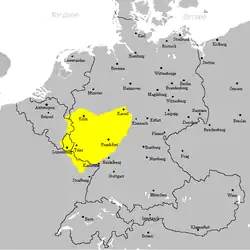 - dans une zone limitrophe en Allemagne dont les limites nord et est avec le francique mosellan au sens non large sont floues