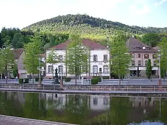Sur la place de l'Hôtel-de-Ville, la Croix Rouge américaine installe, courant 1917, un "stand" qui distribue des boissons chaudes et quelque nourriture aux soldats de retour du front ou qui y montent. Les habitants de la commune profitent eux aussi de ces distributions. Ce point de ravitaillement est tenu par le lieutenant américain Thomas Plummer qui décédera le à l'hôpital de Raon-l'Étape. Sa dépouille est enterrée au cimetière de Moyenmoutier. Une plaque commémorative est apposée sur la façade de l'hôtel de ville.