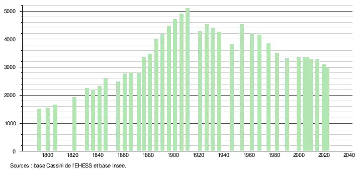 - ↑ Population municipale de référence en vigueur au 1er janvier 2025, millésimée 2022, définie dans les limites territoriales en vigueur au 1er janvier 2024, date de référence statistique : 1er janvier 2022.