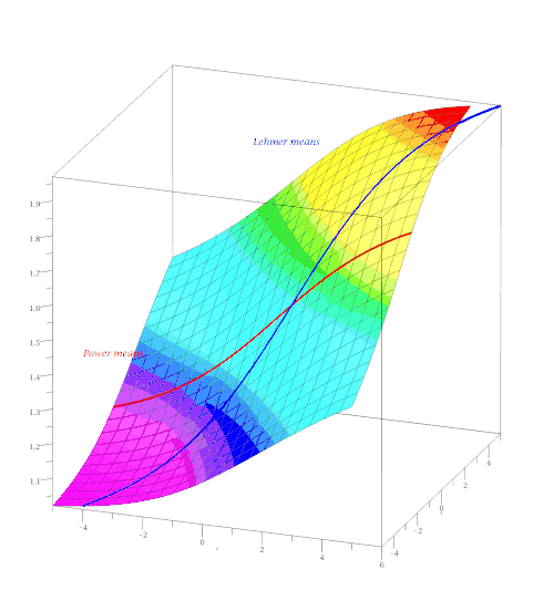 Tracé des moyennes de Gini, de Lehmer et d'ordre p de 1 et 2.