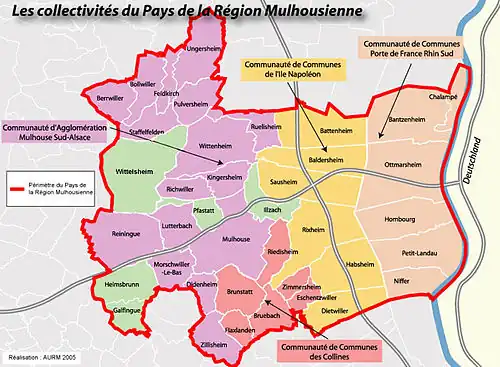 - la Communauté d'agglomération Mulhouse Sud-Alsace ou CAMSA (créée en 1997 comme communauté de communes puis devenue communauté d'agglomération en 2001) ;