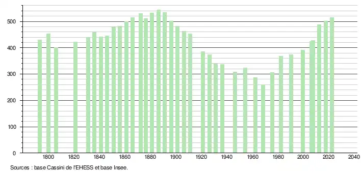 - ↑ Population municipale de référence en vigueur au 1er janvier 2025, millésimée 2022, définie dans les limites territoriales en vigueur au 1er janvier 2024, date de référence statistique : 1er janvier 2022.