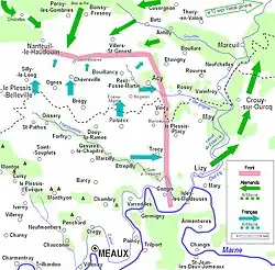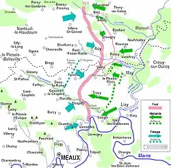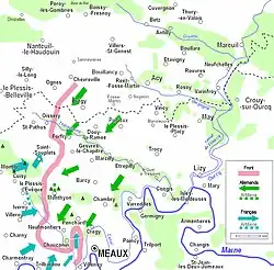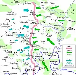 - ↑ Cote 107 : Point culminant des collines situées entre Chambry et Varreddes, vers la route de Meaux à Soissons