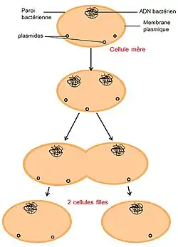 La fission binaire est un mode de division cellulaire qu'on trouve chez les Eubactéries et les Archées, et dont les modalités cytologiques sont très différentes de la mitose. La fission binaire permet cependant, tout comme la mitose, la production de deux cellules filles génétiquement identiques à partir d'une cellule mère.