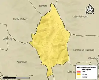Les communes les plus proches[Note 1] sont[3] : Lamarque-Rustaing (2,1 km), Luby-Betmont (2,2 km), Osmets (2,4 km), Aubarède (2,9 km), Sère-Rustaing (3,1 km), Peyriguère (3,3 km), Cabanac (3,5 km), Villembits (3,6 km).