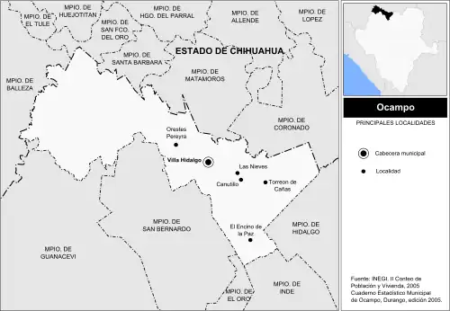 - ↑ « Ocampo », Instituto Nacional para el Federalismo y el Desarrollo Municipal (version du sur Internet Archive)