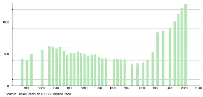 - ↑ Fiches Insee - Populations de référence de la commune pour les années 2006, 2007, 2008, 2009, 2010, 2011, 2012, 2013, 2014, 2015, 2016, 2017, 2018, 2019, 2020, 2021 et 2022.