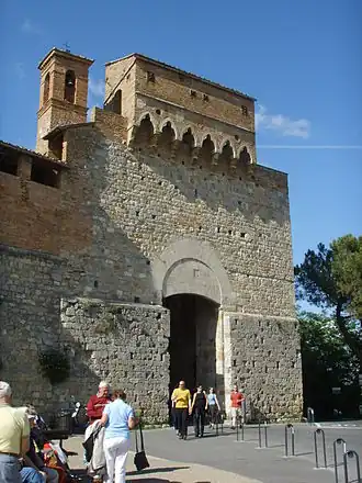 - (it) Cet article est partiellement ou en totalité issu de l’article de Wikipédia en italien intitulé « Mura di San Gimignano » (voir la liste des auteurs).