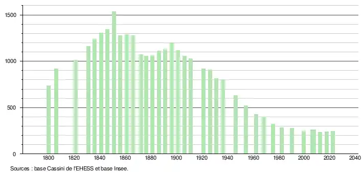 SI QUÆRIS MIRACULALa fin du XIXe siècle voit une décroissance spectaculaire de la population, suivie et aggravée au XXe par la disparition progressive des services publics : poste de douane, perception, justice de paix, gendarmerie, collège ; seule la Poste a pu être conservée.