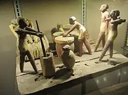 Scène montrant les diverses phases de la fabrication du pain. Bois. |