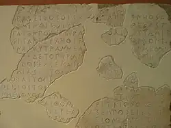 Fragment de l'édit de Dioclétien trouvé à Aigeira : « édit du Maximum ».