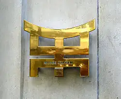- ↑ Le graphisme épuré du logo qui semble évoquer l’Empire du soleil levant est pourtant très proche d’un appuie-tête téké/mfinu (RDC) présenté lors de l’exposition Parures de tête