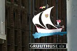 Une riche famille de Bruges, vraisemblablement au XIIIe siècle, a reçu le privilège de prélever des impôts sur le gruit (épices et plantes aromatiques pour aromatiser la bière) et a construit une structure pour l'entreposer. Le bâtiment a été transformé au début du XVe siècle par Jan IV van der Aa en une maison de luxe pour sa famille, qui a ensuite changé son nom en Van Gruuthus ("de la maison Gruit"). Son fils Louis de Gruuthuse ajouta une deuxième aile à la maison et en 1472 une chapelle qui relie la maison à l'église adjacente Notre-Dame de Bruges[1].