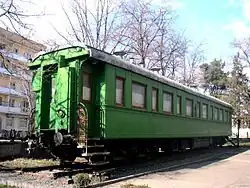 La voiture de chemin de fer personnelle de Staline se trouve sur un côté du musée. La voiture verte Pullman, qui est blindée et pèse 83 tonnes, a été utilisée par Staline à partir de 1941, notamment lors de sa participation à la conférence de Yalta et à la conférence de Téhéran. Elle a été envoyée au musée après avoir été récupérée d'une gare de triage de Rostov-sur-le-Don en 1985.