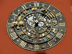 Fabriquée en 1904 par la firme Hörz et restée au musée historique de la ville jusqu'en 1958, l'horloge astronomique est une réplique de celle de l'Hôtel de Ville d'Ulm faite au XVIe siècle par Isaac Habrecht[1]. L'horloge présente un astrolabe et un planétaire, lequel reproduit les mouvements des astres et des étoiles autour du soleil ; le cadran a un diamètre de 2,76 mètres[2].