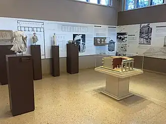 L'antichambre du musée présente l'histoire des fouilles dans la région et la restauration de la stoa du sanctuaire d'Artémis.