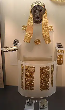 Éléments de la sculpture chryséléphantine supposée de Léto. Statue de culte en or et ivoire. Trouvée à Delphes, mais probablement d'origine ionienne. |
